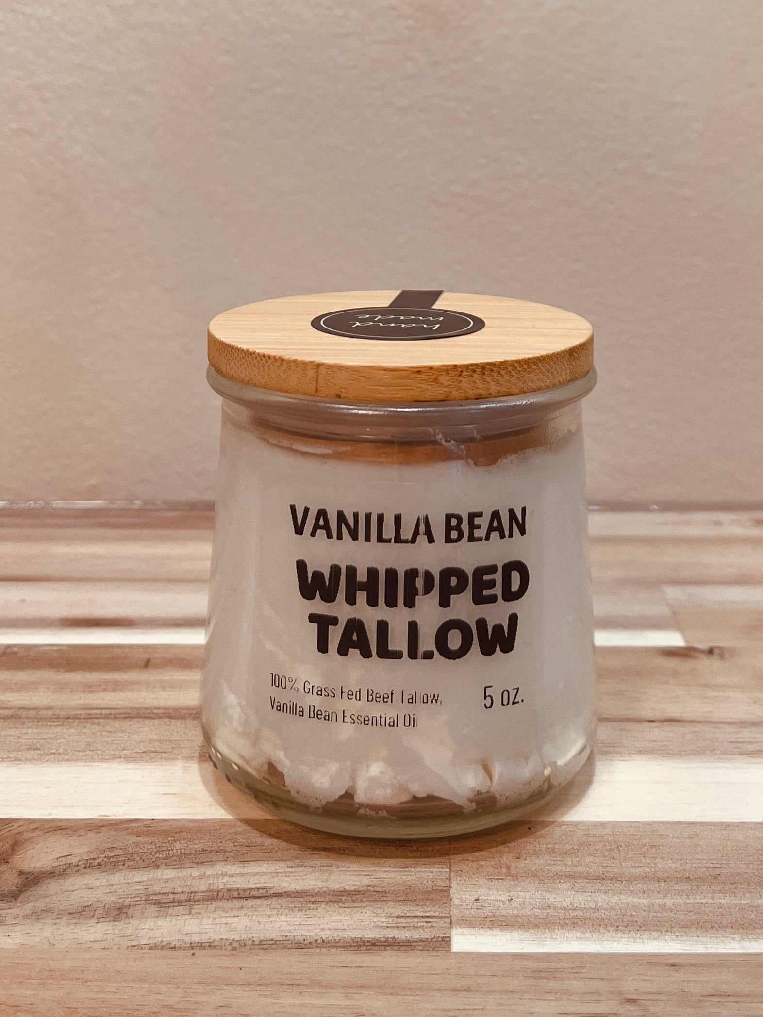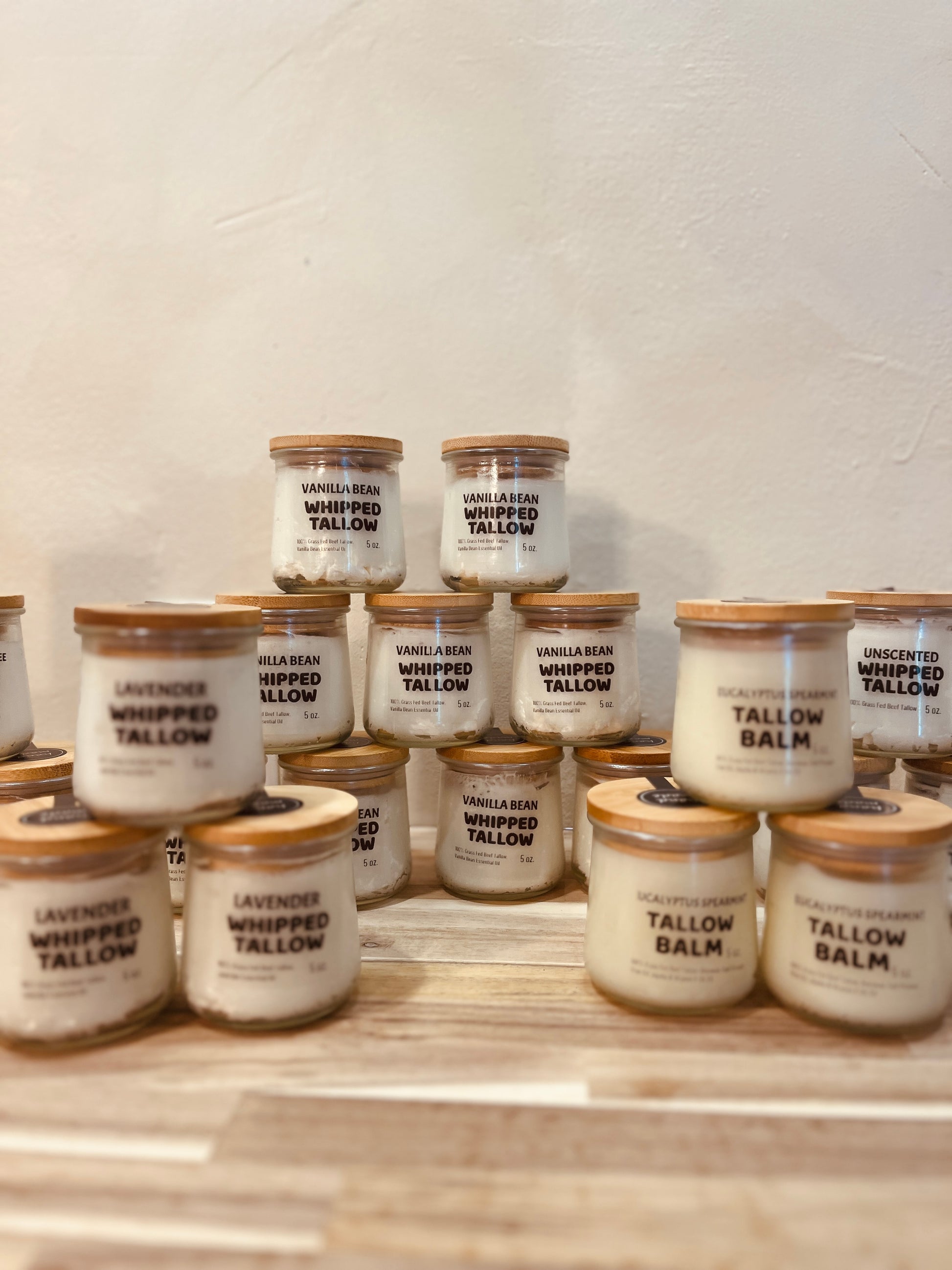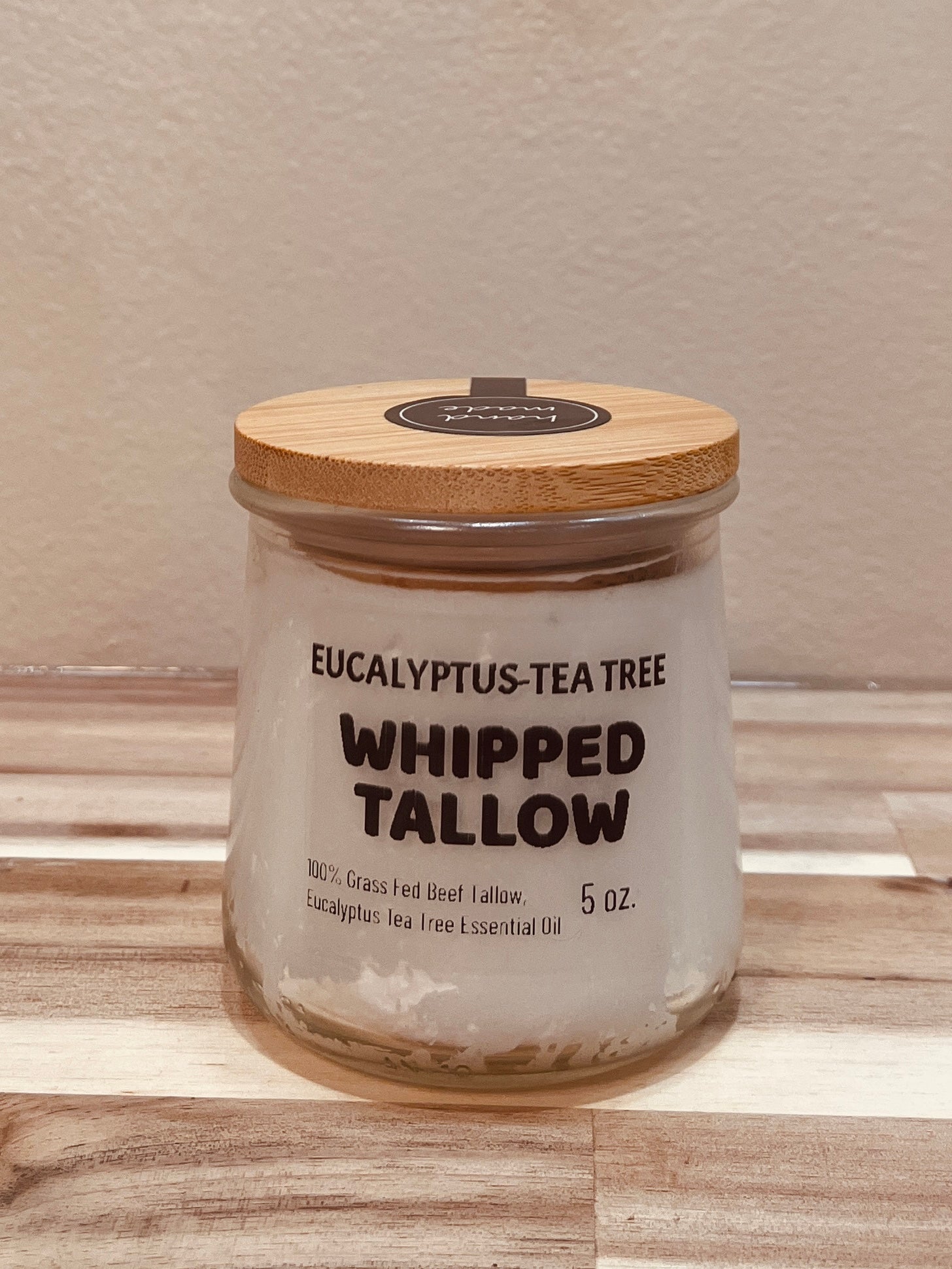 Whipped Tallow can be used as a moisturizer, face cream, baby lotion, deep conditioning treatment for hair, sunburn and diaper rash, lip moisturizer. We take our 100% Grass Fed Beef Tallow and whip air into it making a softer, fluffier tallow that feels great on your skin.