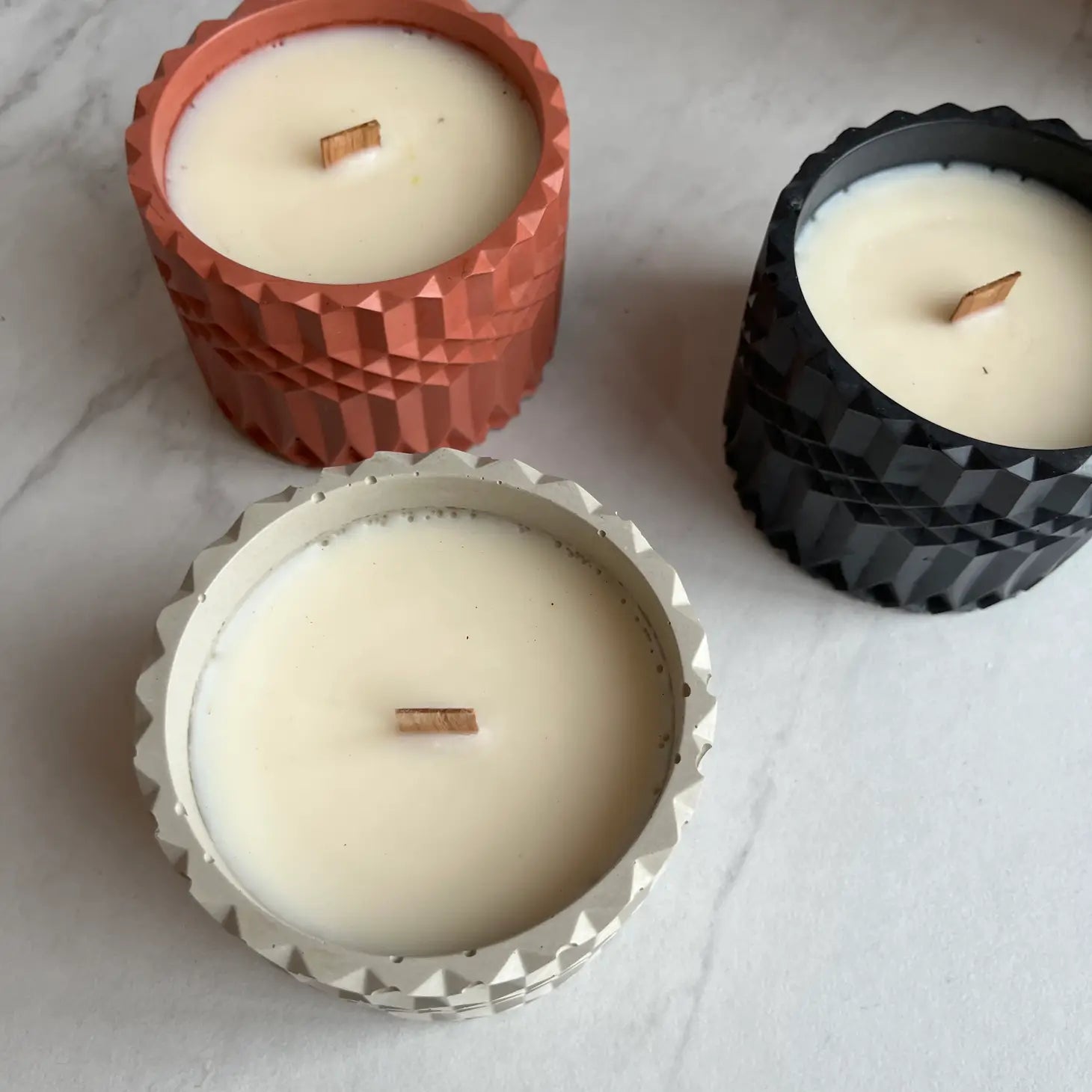 Our 8oz Holiday Candles are poured in a stunning concrete trinket container, embellished with beautiful and ornate detail. They are just begging to have a place with your vintage Christmas decor.