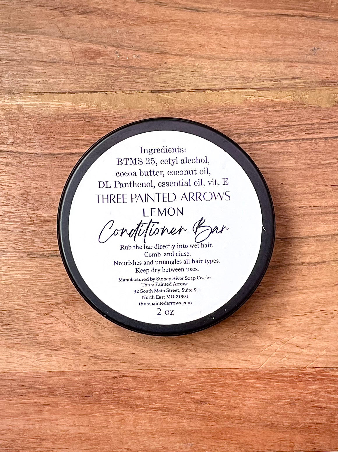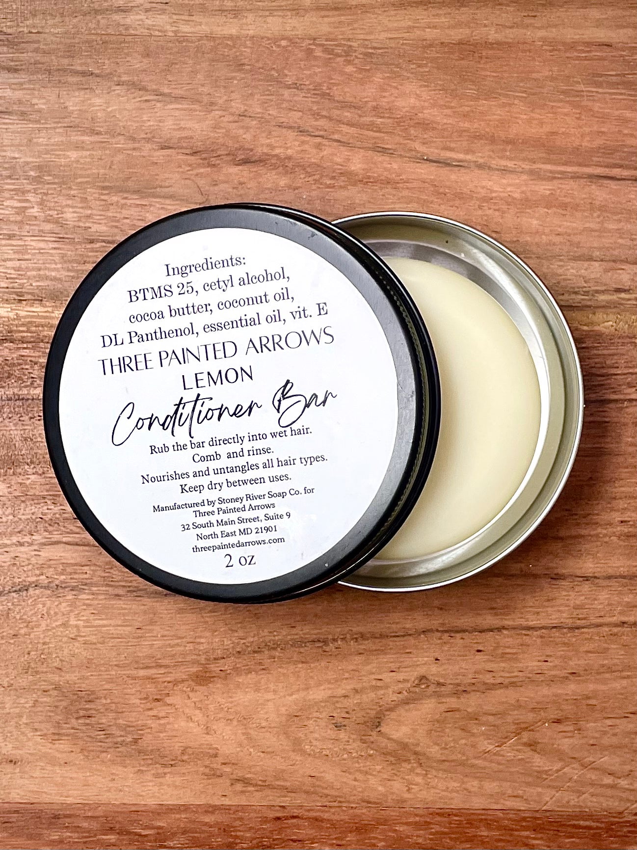 The conditioner bars are 2 oz. They work great and last a long time. So convenient when traveling! Just rub the bar directly on the hair, especially in the ends, comb your hair, leave it on for a minute, then rinse. You may also reapply a tiny bit after you are done rinsing and leave it on. Important to keep it dry between uses. Ingredients: BTMS 25 (derived from colza oil), cetyl alcohol, cocoa butter, coconut oil, dl panthenol, vitamin E, scented with either essential oils of lavender, mint, lemon or fragrance oil of coconut, or unscented.