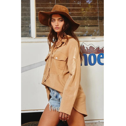 French Terry Oversized Shacket - Shirt, meet jacket - Spread collar and button-front closure - Chest exaggerated pockets - Raw edge details - Curved hem - So cool and slouchy