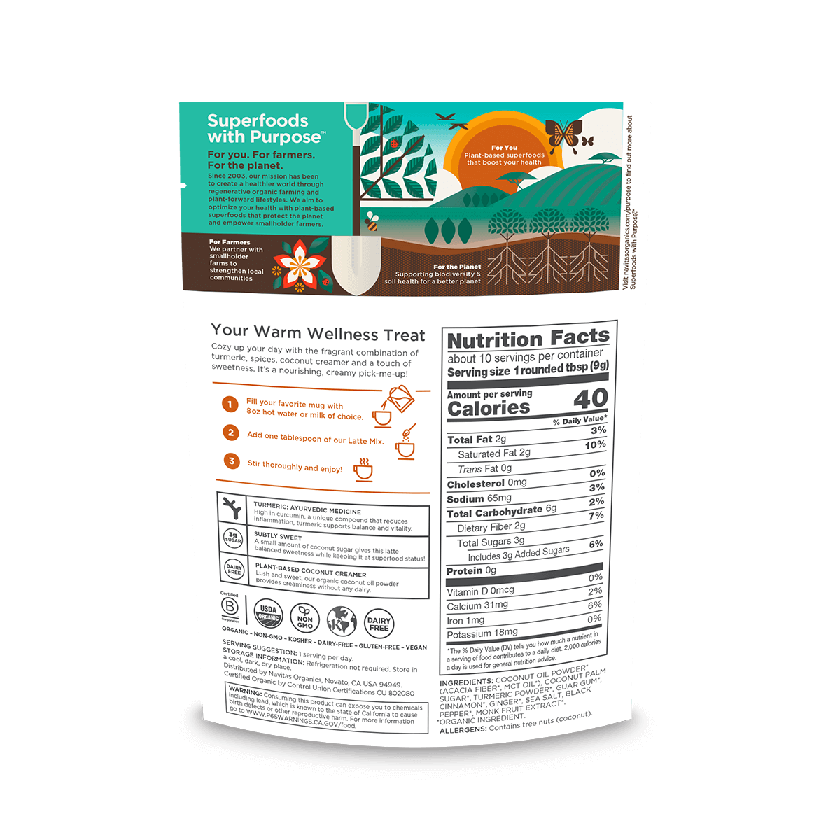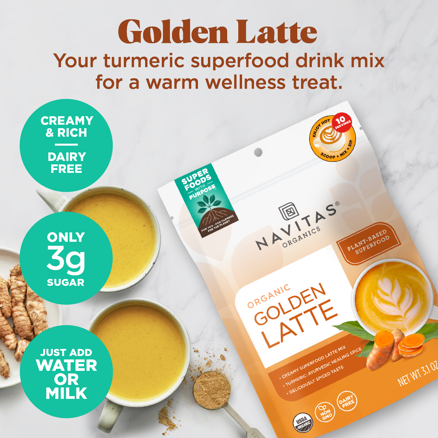 Navitas Organics instant Golden Turmeric Latte Mix is our favorite warming wellness ritual. Made of organic turmeric, fragrant spices like ginger powder and black pepper, and creamy coconut oil powder, it’s a feel-good superfood treat that's a breeze to make—just add hot milk or water or pour over ice & enjoy!