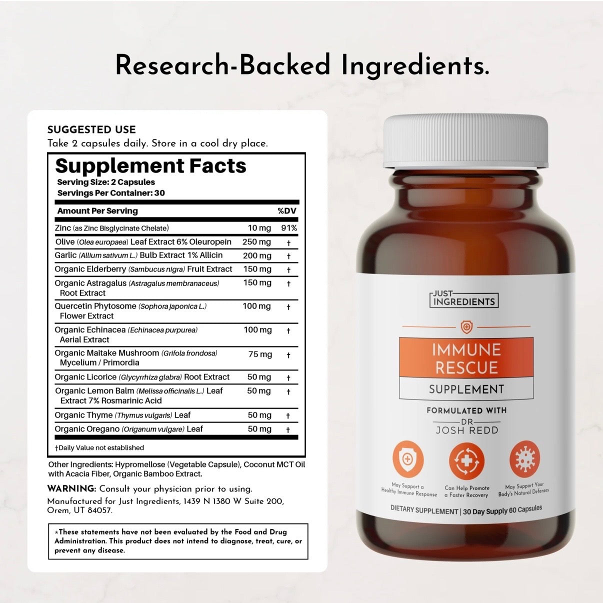 Make sure you’re prepared for when you or those around you are feeling run down. Immune Rescue combines a unique blend of herbs, botanicals, and minerals to help your body stay strong and resilient.* Zinc may support cellular function,* while olive leaf, garlic, elderberry, echinacea, maitake mushroom, and astragalus are all traditionally used in herbal wellness practices to help the body respond to external stressors and support vitality.* Elderberry and echinacea also contribute antioxidant activity, helping to protect cells from free radical damage.*