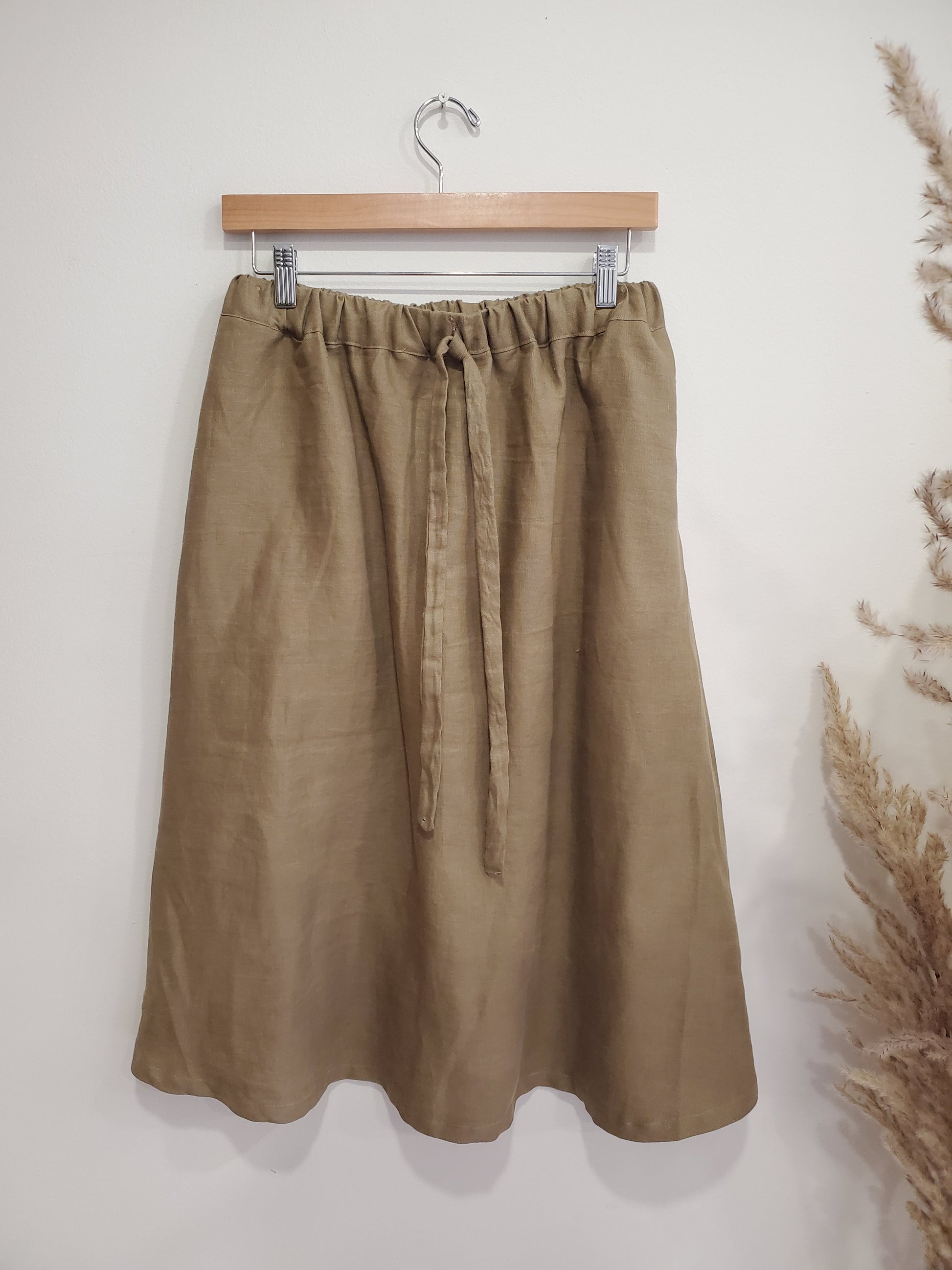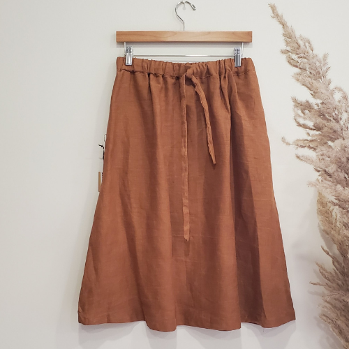 High quality handmade 100% linen skirts. Elastic waist with tie and pockets. The perfect linen skirt. Dress it up or down!