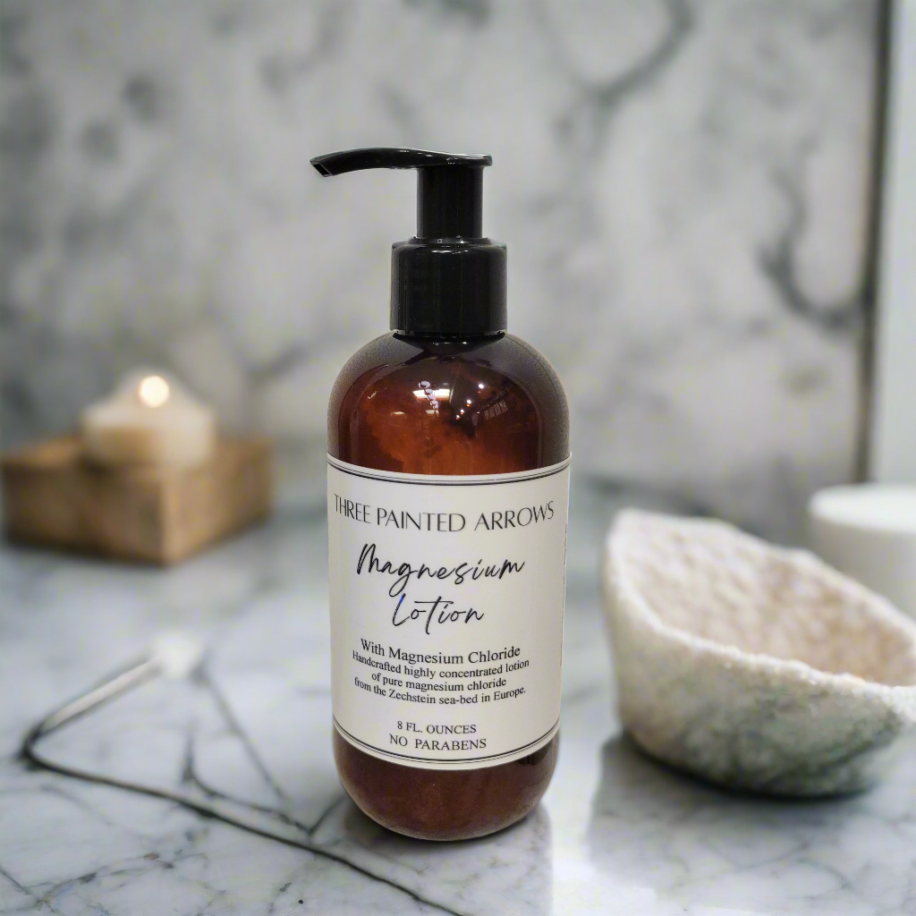 Handcrafted with the addition of magnesium chloride flakes. Magnesium is best absorbed though the skin and may help with sleep. Made with water, avocado oil, magnesium chloride, e-wax, stearic acid, aspen bark extract, citric acid, and essential oils of lavender, orange and peppermint. 8 oz each.