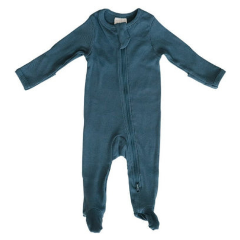 Navy Organic Cotton Ribbed Zipper One-piece
