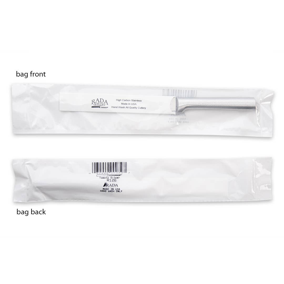 A top seller in Rada’s lineup of great knives, the world-famous Tomato Slicer features our dual-serrated blade that allows you to effortlessly cut perfect tomato slices—thick or thin—without squashing. It goes way beyond tomatoes though. Use it to cut through crusty rolls then make flawless pepper rings, cucumber rounds, and onion slices for sandwiches. It will be one of the most-used—and most-loved—knives in your kitchen.