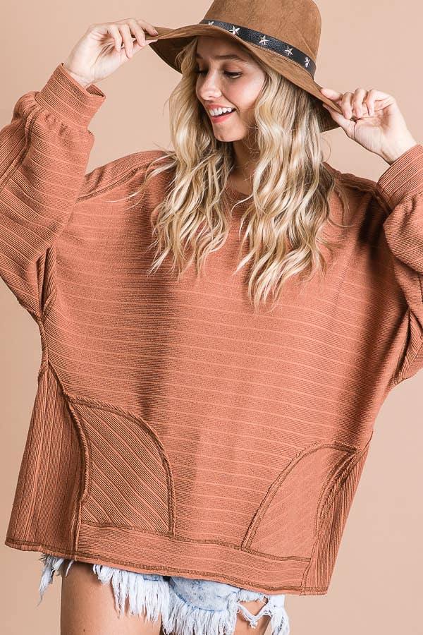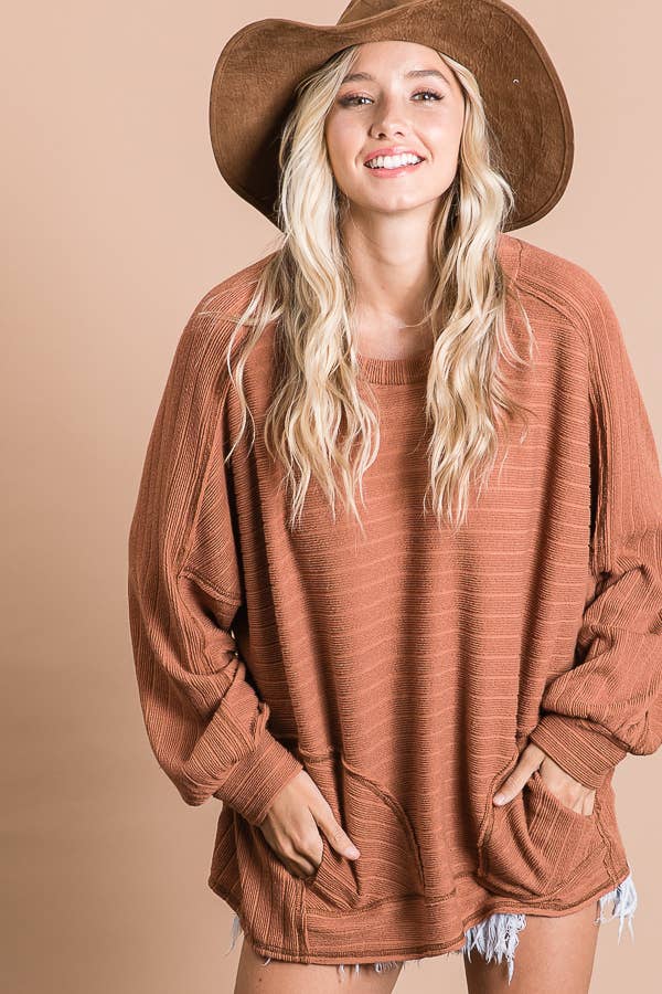 Textured Women's Rayon Span Bold Stripe Boxy Top with Side Pockets