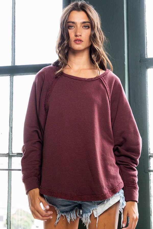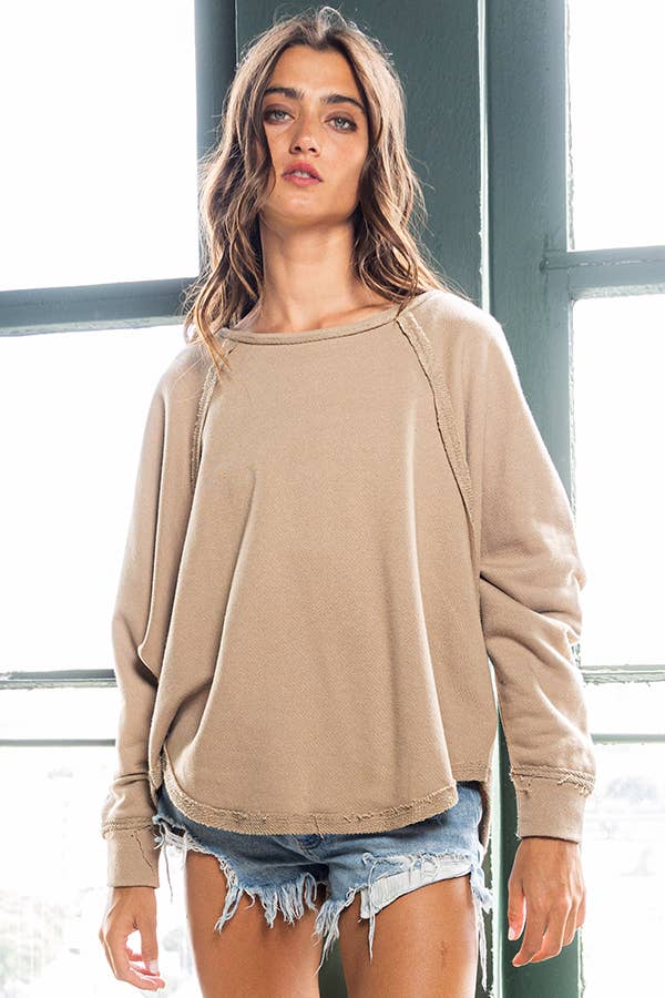 French Terry Round Hem Detailed Loose Fit Top TAUPE