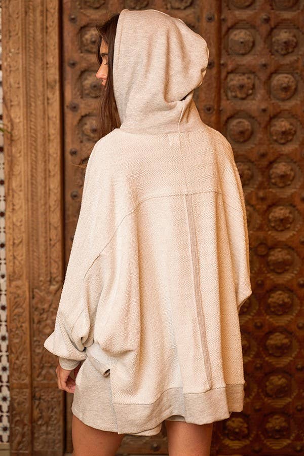Button Up French Terry Knit Hoodie With Tunnel Hem