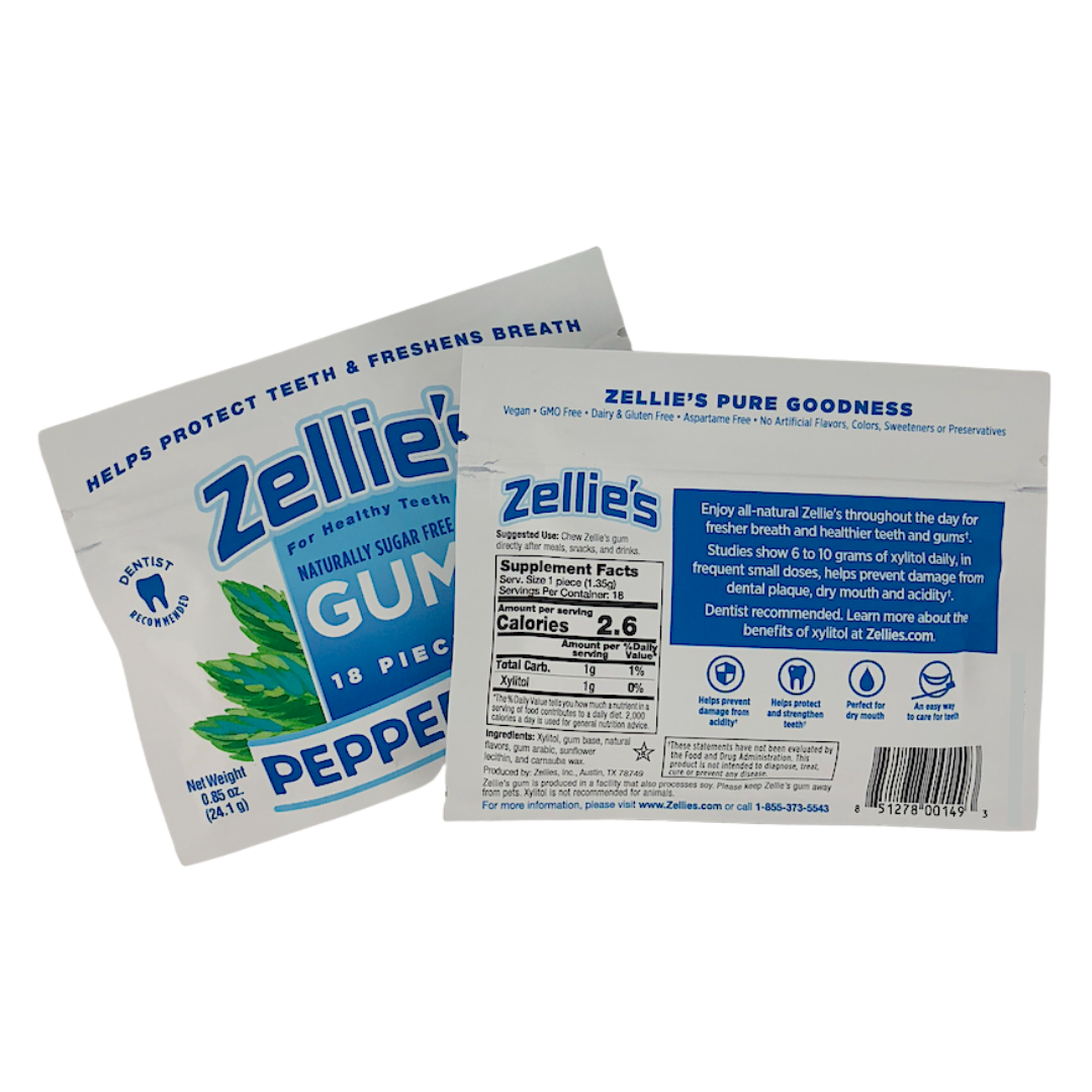 Zellie’s Xylitol Dental Gum is designed for oral health. Each piece is sweetened with 100% tooth-friendly xylitol. Zellie's gum has a long-lasting, strong flavor & is made with natural ingredients. Zellie's gum contains no glycerin/glycerol - most other gum on the market contains this ingredient.